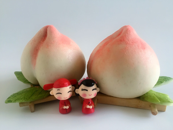 锅中烧水,水开上锅蒸二十分钟。用面粉筛筛一些草莓味果粉或者红曲粉,薄薄地一层即可。可爱的寿桃馒头是不是很萌哒!