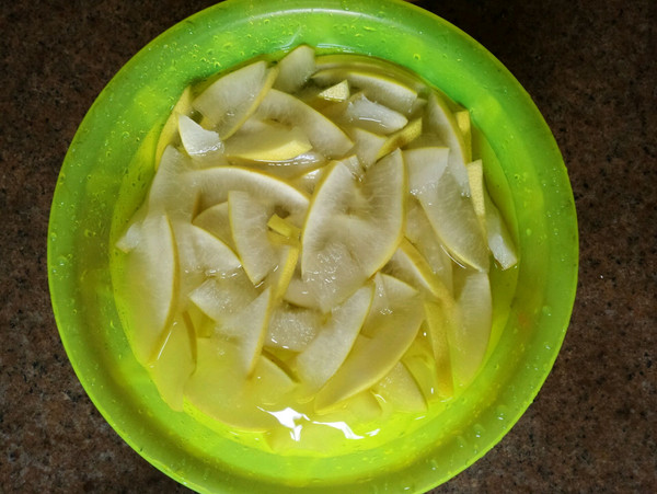 我是比较随意的人不讲究,所以切成大小都不一!!用盐洗掉表面的!!