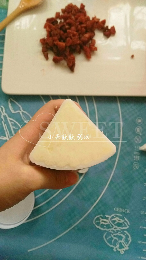 脱模可以开吃咯,也可以放冰箱冰镇,冰镇后形状更稳定好看,适合夏天吃,没有模具的可以直接包上果脯,搓圆,没有果脯直接放水果,或者什么都不放,淋点果酱蜂蜜也可以