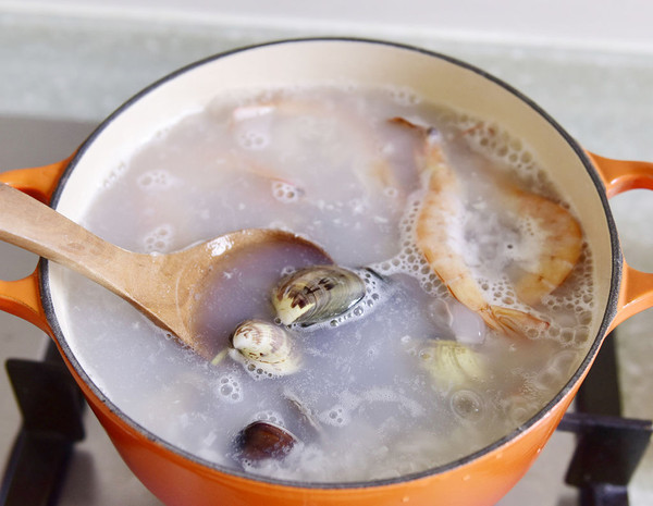 将清洗后的大米加入盛有净水的锅中,泡10分钟左右;