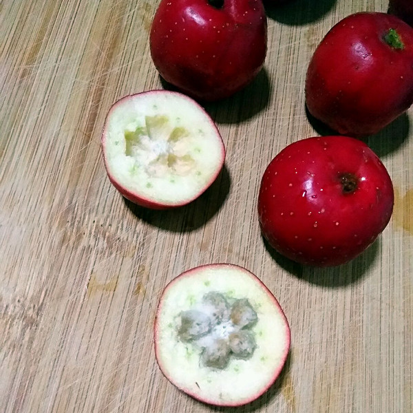 在山楂中间填上红豆沙馅。(做的过程中突然想到家里还有那天包豆沙包剩下的红豆沙,就随手用上了)
