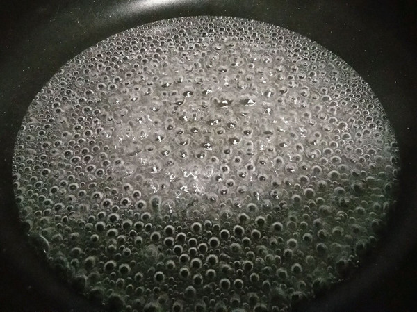 中火加热至冰糖完全融化,起这种密集的泡泡。(冰糖融化过程中不要用勺子搅拌,可以轻轻的晃晃锅。)