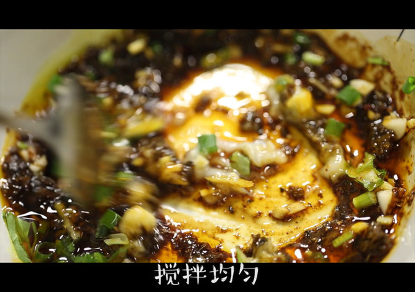 碗中加入生抽,醋,花椒粉,砂糖,芽菜,辣椒油,花椒油,猪油,最后加入葱姜蒜末搅拌均匀
