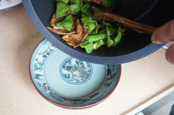 开锅倒入青椒继续爆炒直至程序结束