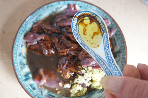 调味后的猪肝腌制5分钟