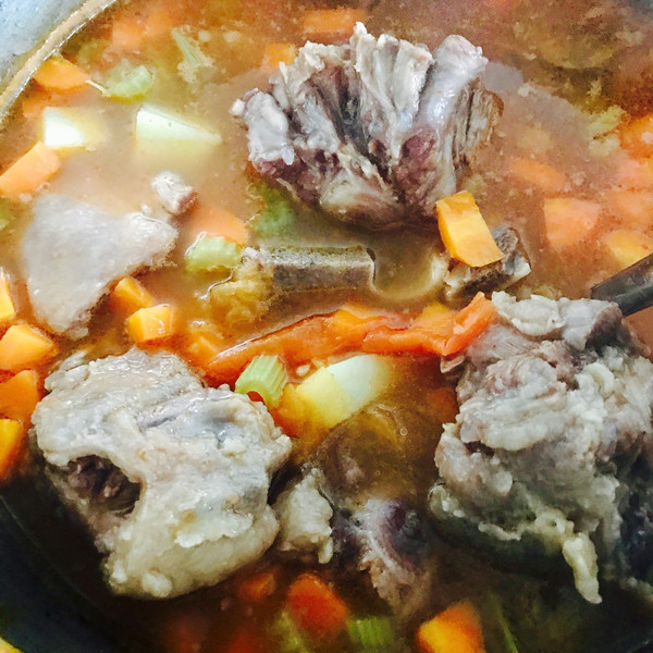 根据个人喜好加入葱姜料酒,没有可以不放。水开之后撇去血沫,捞出葱姜。(如果把牛尾和牛骨一起煮,则需要多撇几次血沫。)血沫撇净之后转小火慢煮,所有蔬菜切成丁儿或者块儿。先加入西红柿作汤底,如果没有西红柿就直接倒入番茄酱。边倒番茄酱时边搅拌,看汤汁变成红色/浓郁即可。胡萝卜芹菜土豆盐依次放入,再煮四十分钟就可以吃了。