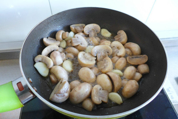 将蒜瓣放入锅中,小火慢煎2分钟;