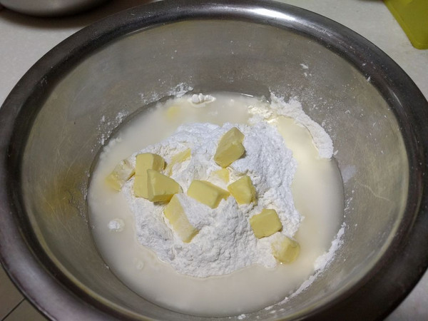 制作油酥:将低筋面粉和黄油混匀揉成团即可