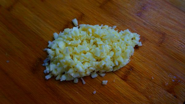 倒入切好的生姜大蒜末,还可以放入少许洋葱块,上次做的时候放了,特别香