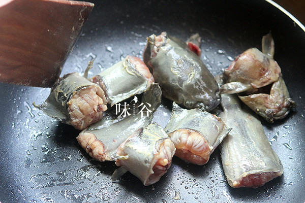 锅内热油,把鲶鱼稍微煎一会儿,颜色有些发黄即可。