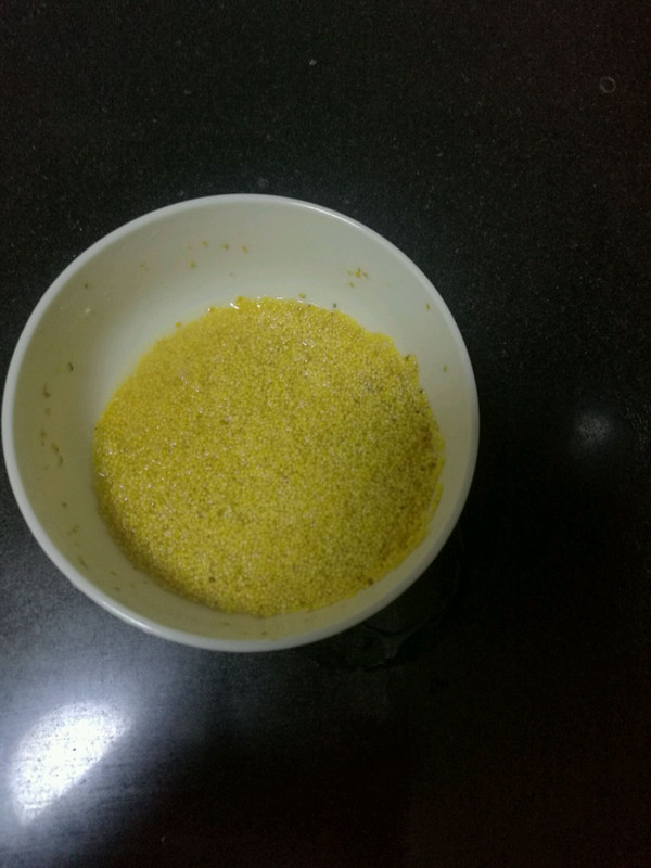 熬小米的时候用红、白糖和芝麻调一下馅料(也可以炒点白面调在一起)。