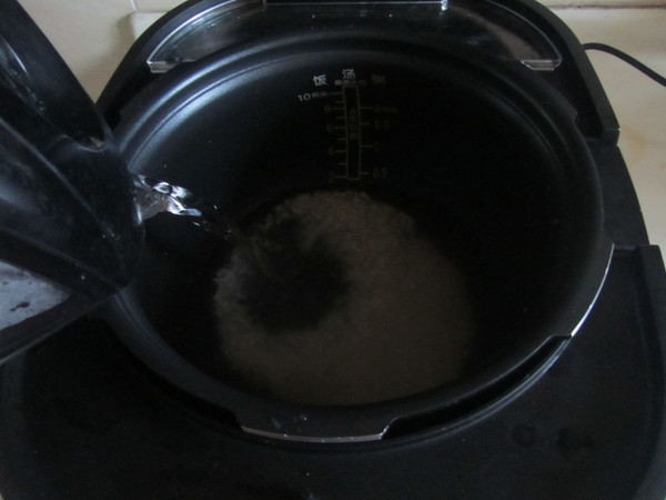 将洗净的大米放入电压力锅中, 放入适量的水;