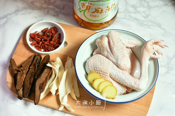 提前做:灵芝洗净切片,山药浸泡软,杞子洗净