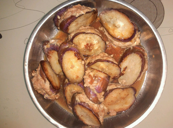 瘦肉剁碎,放油盐酱油淀粉打个鸡蛋搅拌。茄瓜切片状,两片为一块,两片间不切断,把调好味的瘦肉塞到茄瓜两片间夹着,锅里放油小火,放入茄瓜煎。一定要多油,茄瓜很吸油。