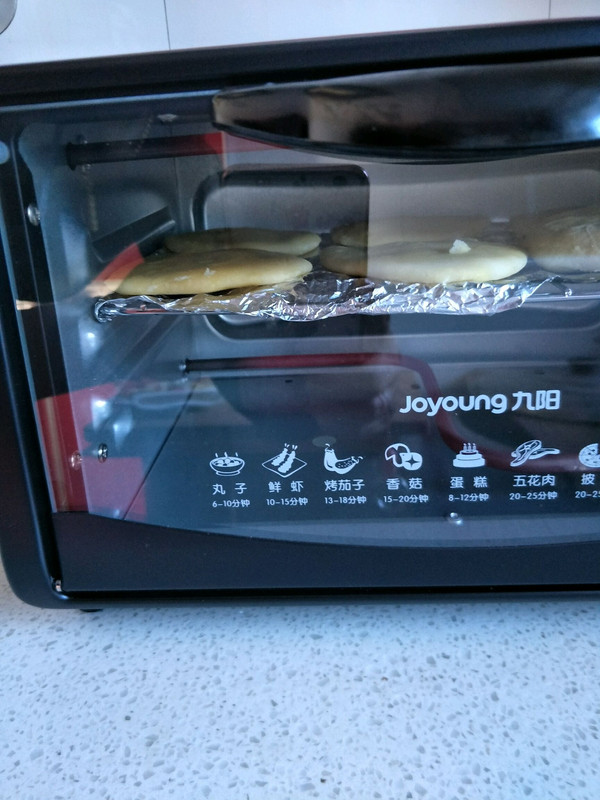 烤箱200度预热10钟,烤20分钟就会好,因为我的烤箱小,所以饼小,温度和时间根据自己的饼大小调整!