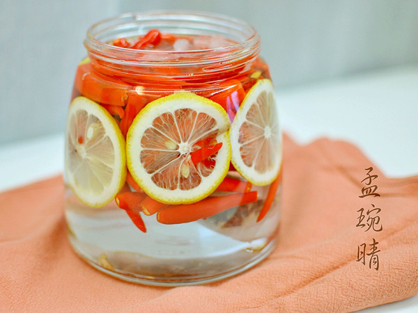 准备食材。朝天椒洗净,柠檬切片,冰糖,食盐,花椒,香叶,八角。