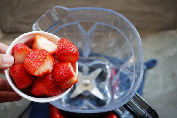 将1/2草莓放入搅拌杯中。 5. 6.