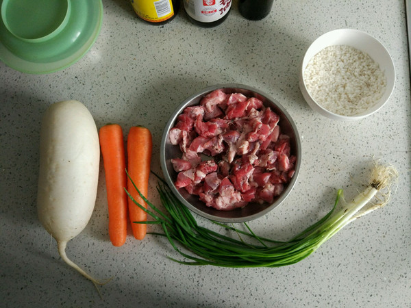 米我也提前半天泡发过,先煮上,来了以后加肉,和蔬菜。