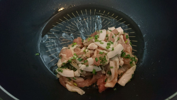 放入腌肉片1的辅料,抓匀,去腥。放入腌肉片2的辅料,抓匀,调味。