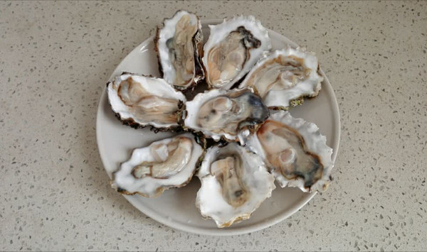 生蚝用刷子刷干净外壳,洗净蚝肉,摆放于盘中