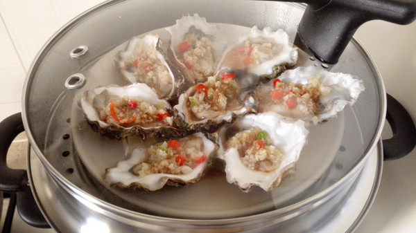 蒸锅中水烧开后,放入生蚝,蒸5-6分钟即可