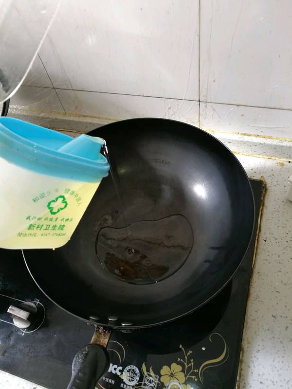 锅里放油,多点无所谓,反正豆腐渣挺吸油的,腊肉里也会出油,请忽略油壶上的字