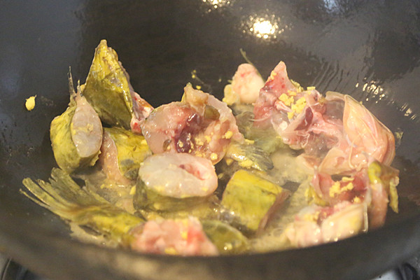 架锅烧开做汤的水,同时另起一油锅稍微炒一炒黄骨鱼;