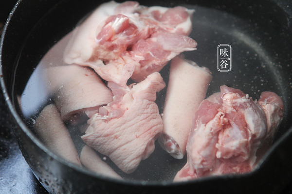 猪尾巴凉水下锅烧开1分钟,猪尾巴后去掉浮沫血水洗干净备用。