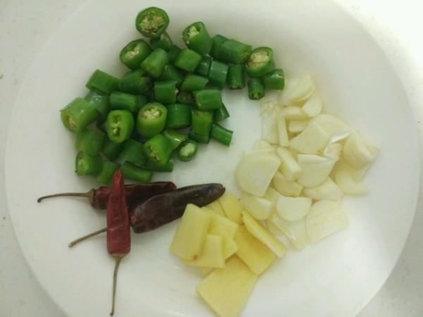 热锅冷油,放入姜蒜辣椒爆香,然后下入腌制好的牛蛙(淹牛蛙出的水不要倒进去)翻炒,因为有生粉腌制,所以要不停翻炒以免粘锅。