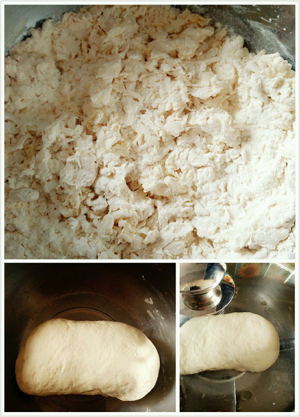 把酵母倒入面粉里,一点点加入温水,和成光滑的面团,盖上保鲜膜或者锅盖,饧发十五分钟。(注意:我用的是快速发面法)