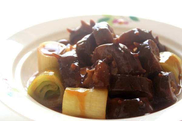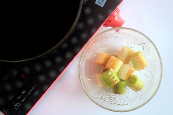 海参、大葱葱白切成寸段,葱尾可以切碎留用,生姜切成厚片。