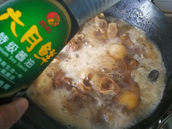 调入老抽和六月鲜,大火烧开之后转小火焖一个半小时以上。