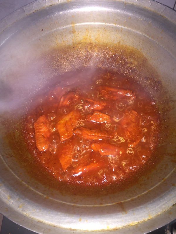 翻炒均匀,让每个鸡翅都裹均匀番茄酱。再倒入温开水,没过鸡翅中。不要直接到冷水,这样会使得松弛柔嫩的肉质遇冷猛的收缩,肉质口感不好。