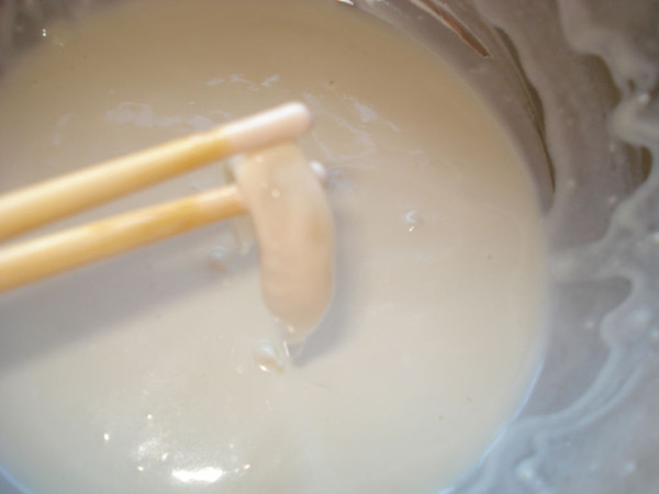 面粉和淀粉中加入泡打粉搅拌均匀,再加水制成面糊,使用前在糊中滴几滴食用油