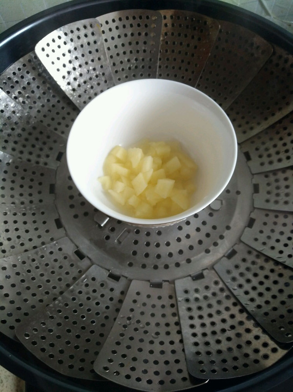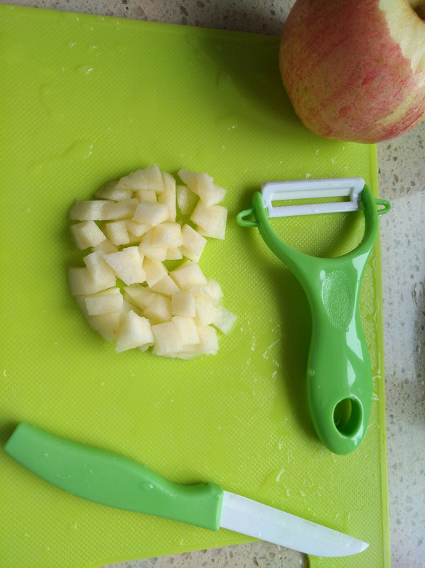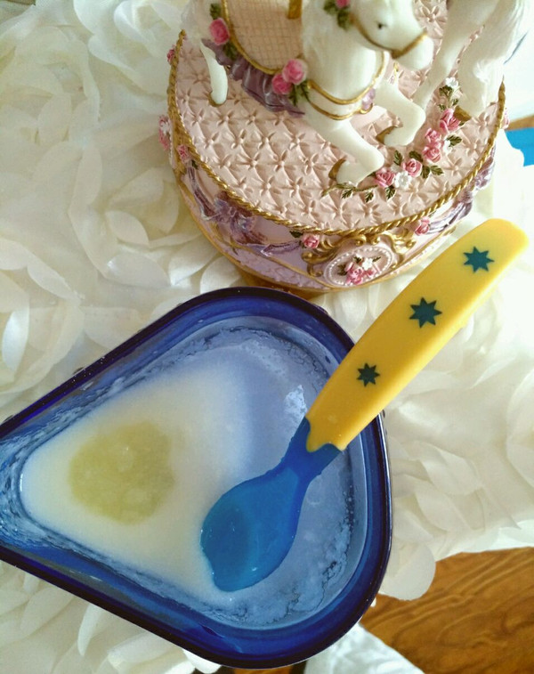 这个是第二次做,苹果蒸的时间短,就能看到打出来的不够细,宝宝开始添辅食是不能吃这么大粒的,要很细的才好,以免宝宝不消化。