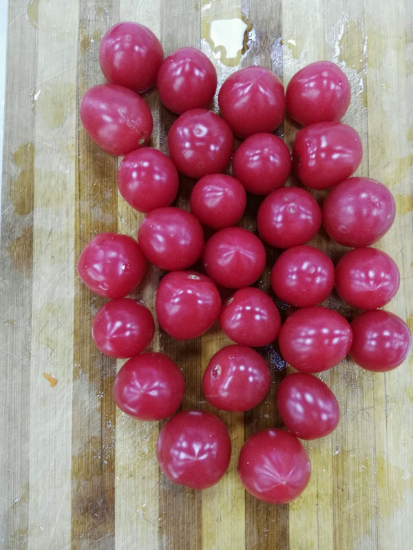 红果一分为二,上面撒上糖粉,放入烤箱,温度120克时间110分钟