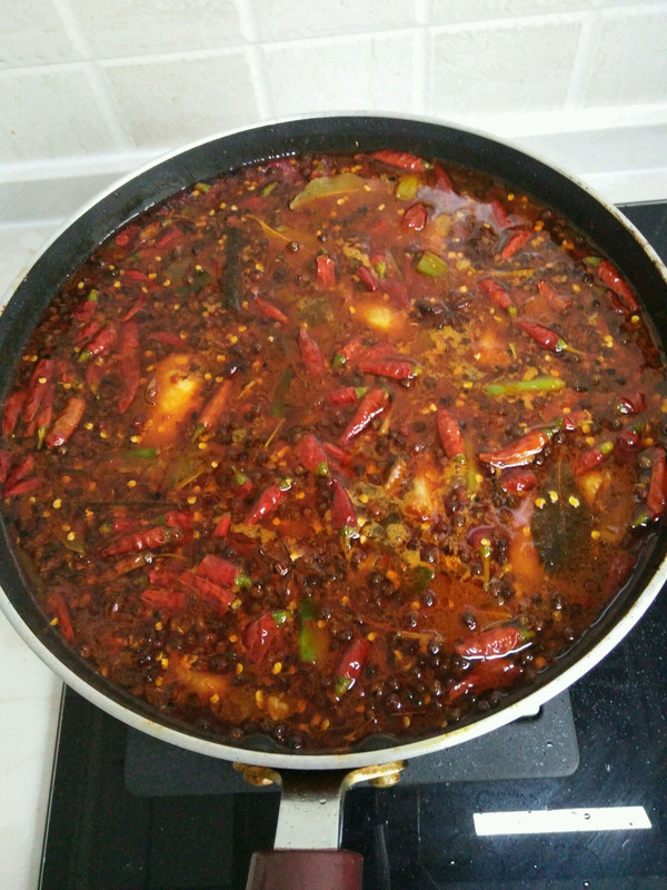 锅里在放油,先放麻椒,炒香