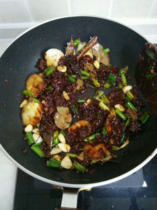 在放其他香料炒香