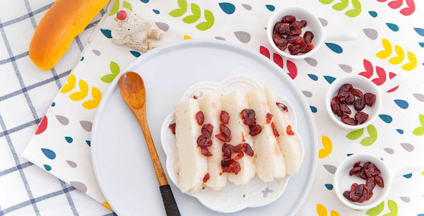 放温暖处发酵原体积的一倍大左右;发酵好之后,表面放适量的蔓越莓, 凉水上锅,水开之后,蒸25分钟左右,在焖五分钟就可以