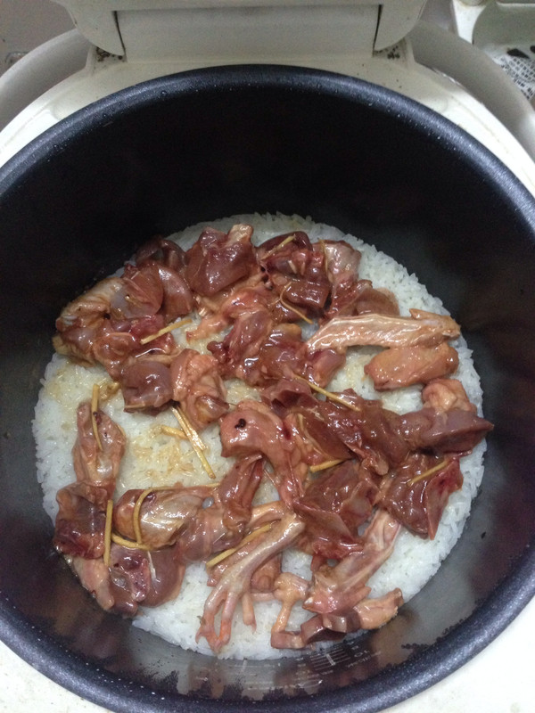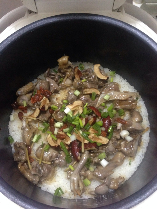 先洗米煮饭,乳鸽斩件,加入醬油,盐,白糖,粟粉调味
