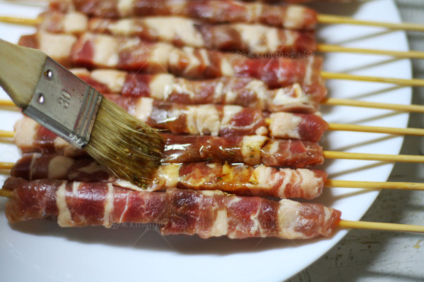 用把酱料均匀刷到肉串上(两面都刷哈),然后放着稍微腌个10几分钟;