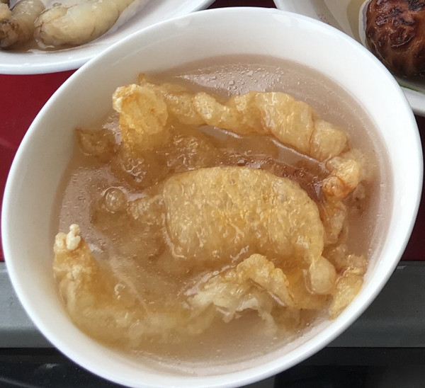冷锅放冷油,放入花胶小火煸至起泡,然后放入冷水中浸泡
