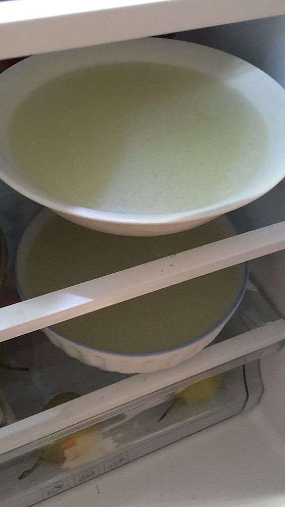 4. 将煮好的海参放无油器皿,防水放冰箱,继续泡发24小时,每隔12小时换水