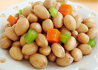芹菜焯水切断,胡萝卜切丁,加少许盐和醋稍为腌制一会,加入放凉的花生米拌匀,加入少许香油拌匀就可以了。
