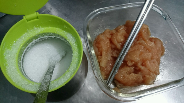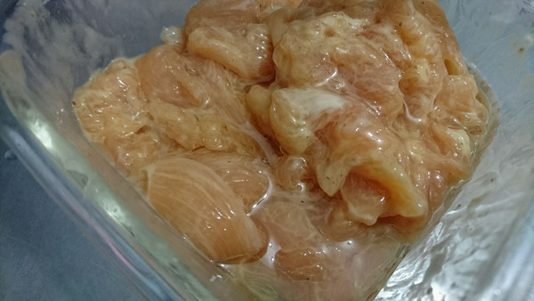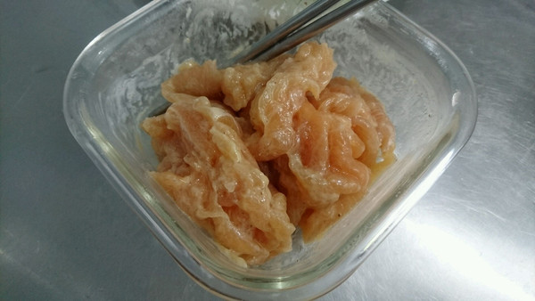 鸡胸肉片,拌一下,不要粘连。