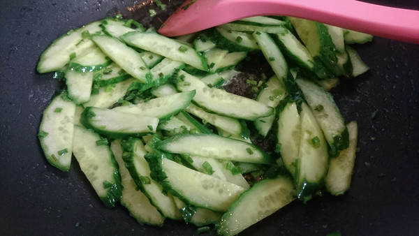放入黄瓜片,翻炒
