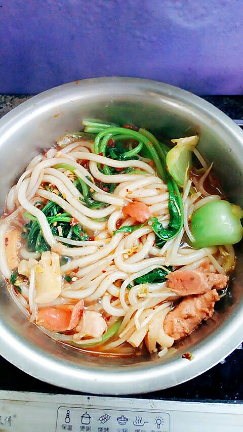 全部均匀蔬菜软之后 ★一锅过桥米线就OK了(最后喜欢吃醋的朋友放入醋 觉得辣不够的放入辣椒油 麻油还可以放一些麻酱的)