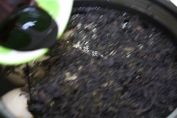 另起一锅干净的水,加大红袍一小碗,可以用泡过的茶叶来做,我临时没有,拿的现成的茶叶煮。