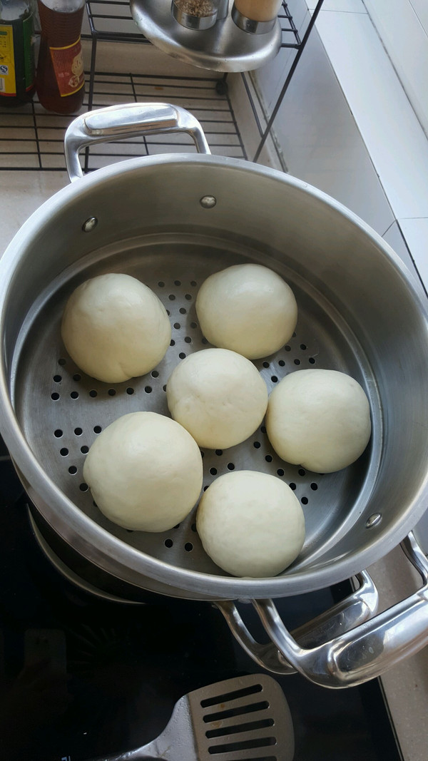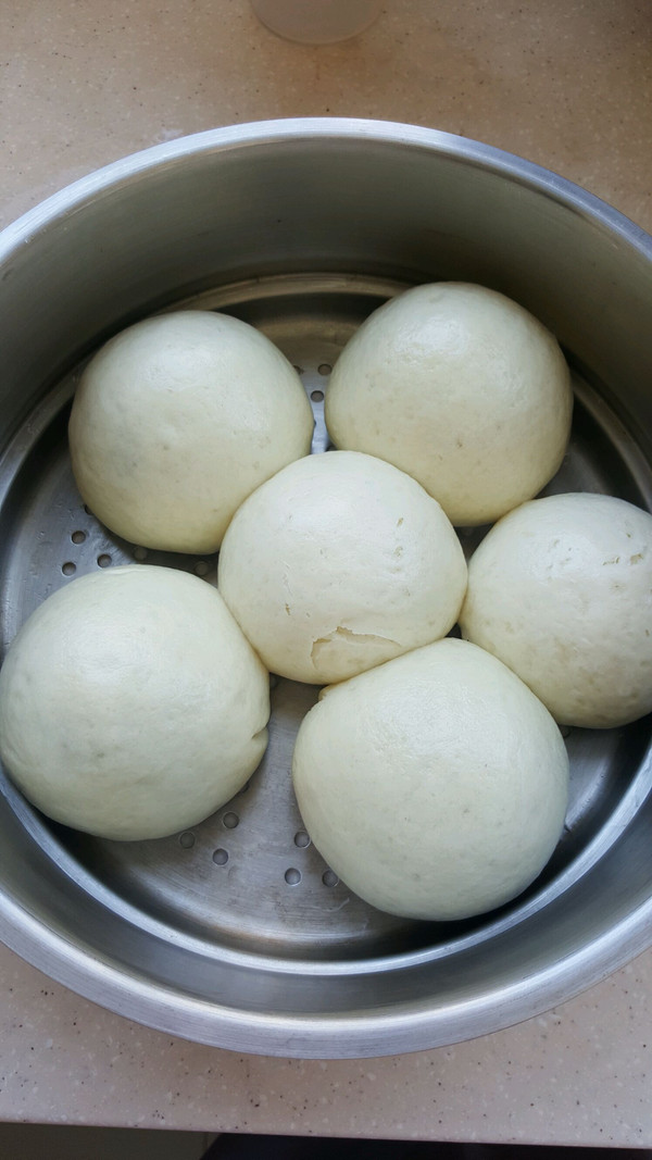 撒些干粉和1克小苏打不停的揉。干粉揉进去再撒些。多揉一会把里面气排干净。我撒了大概8,9次面粉这样。一次量不要太多完全揉进去再加下一次。这样做出的馒头是一层一层的。