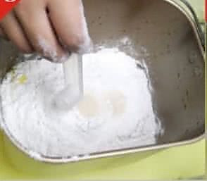 面包机中依次加入水鸡蛋面粉糖奶粉,再挖个小坑放入酵母,启动和面。面粉成光滑的面团之后加入黄油让面团揉出手膜后按发酵
